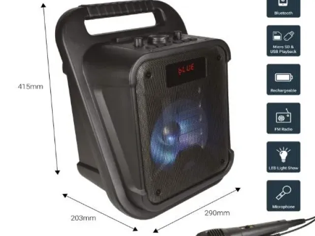 Unleash your inner rockstar with the included wired microphone and sing along to your favorite tunes like a pro. The vibrant LED multicoloured light show in the grille electrifies the atmosphere, immersing you in a captivating visual experience.