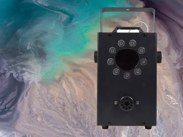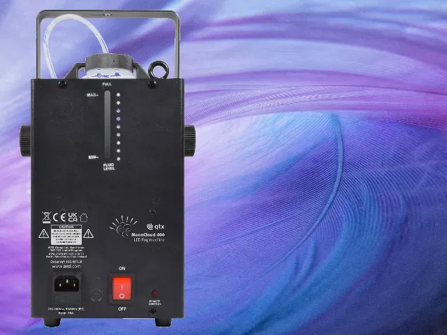 The QTX MoonCloud Compact 400W LED Fog Machine with RGB Moonflower Effect is a compact and portable all-in-one solution featuring a 400W fog machine and two striking light effects.