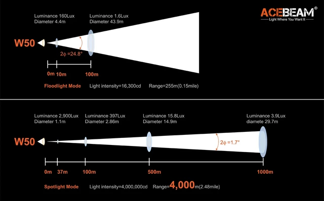 I am part of a great search and rescue team that always looks for the brightest and longest throw Flashlights. What really blew me away was the beam distance. The Acebeam W50 LEP flashlight boasts an incredible range of up to 4,500 metres - that's over 4.5km's! The light is incredibly bright and penetrates even the darkest environments. And unlike traditional flashlights, the LEP beam is incredibly focused, meaning you can even see specific details from a great distance. Highly recommended!