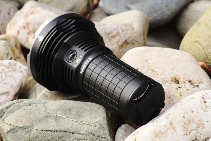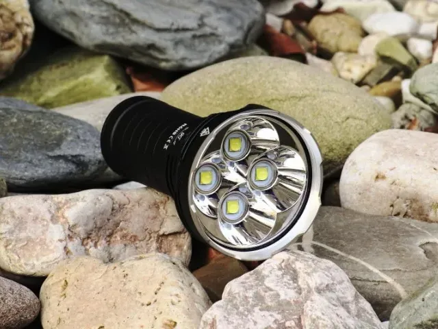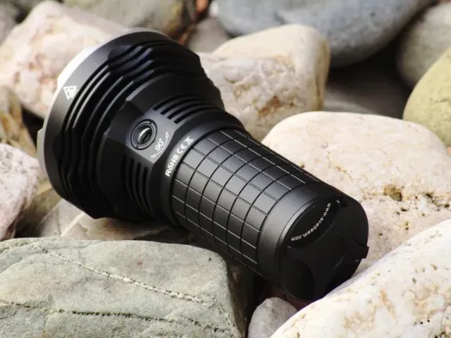 The flashlight features a smooth reflector for maximum light output and a digitally regulated output that maintains constant brightness. It has a side switch on the body and will step down from Turbo-Max to Turbo if the internal temperature exceeds 65℃. The flashlight is made of durable aircraft-grade aluminum with a premium Type III hard-anodized anti-abrasive finish. The ultra-clear tempered glass lens has an AR coating and 98.3% transmittance, and is protected by a stainless steel crenelated bezel.