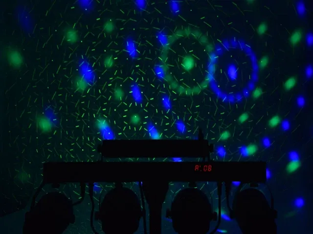The Multi-Bar is a compact and versatile lighting system that is perfect for various occasions, such as parties and events. It consists of a T-bar that includes 2 PAR cans, a ball effect, laser, and UV/strobe units. These lighting fixtures offer a wide range of lighting options and effects.