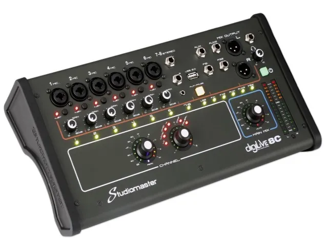 Experience the ultimate in compact mixing with Studiomaster's innovative DigiLive Series, redefining the boundaries of 'Compact Form Factor' in digital mixers, with this 8 Input Compact Digital Mixer.