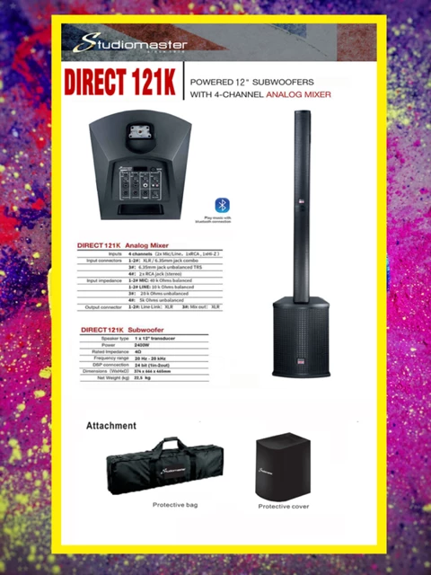 It has a powerful 2000W amplifier and a 4-channel mixer section complete with Bluetooth 5.0 playback and True Wireless Stereo connectivity between speakers. The Direct 121MX also features custom-designed wooden cab enclosures to achieve the best sound reproduction across the spectrum of sound frequencies.