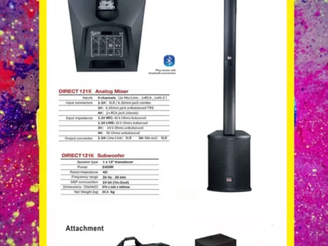 The DSP comes with 3 operational modes including music, DJ, and speech, equipped with a 3 band EQ with sweepable mid-frequency, digital gain control, high-pass filtering, dual-channel limiter, and digital delay of up to 100 m. The Direct 121mx also offers Bluetooth 5.0 stereo Bluetooth playback and TWS connection. The PA system is versatile and adaptable, providing a range of connection options, ideal for different event types.