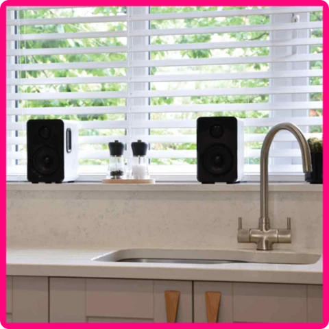 Despite their compact size, these speakers deliver a commanding performance. They seamlessly integrate into any space while enhancing your interior aesthetics. The sleek and contemporary design adds an elegant touch to any room.