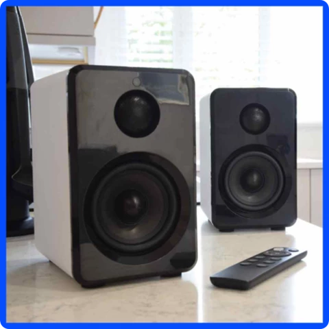 Immerse yourself in extraordinary sound quality and convenience with the AV:Link Active Bluetooth Bookshelf Speakers!